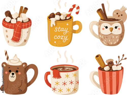 Diverse coffee and tea cups collection for cozy cafe promotions
