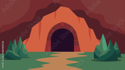 Arctic Abyss: A vector illustration of an icy cave entrance leading to the unknown depths