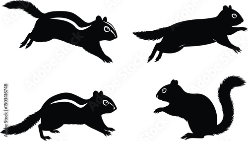 Chipmunk Silhouettes Vector Illustration Set