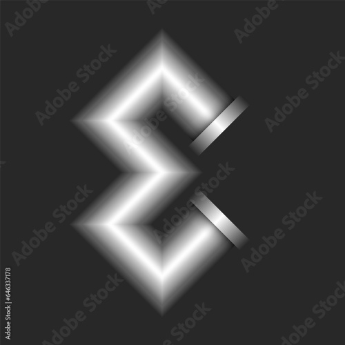 Letter M logo monogram 3d metallic line pipe shape construction with flanges, silver colored creative typography identity, logotype industrial style design.