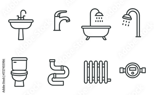 Public and private utilities icon set. Outline Icon Collection. Vector illustration. Editable stroke