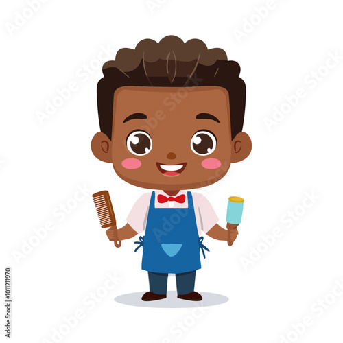 Barber Cutting Hair with Clippers and Comb Minimalist Illustration