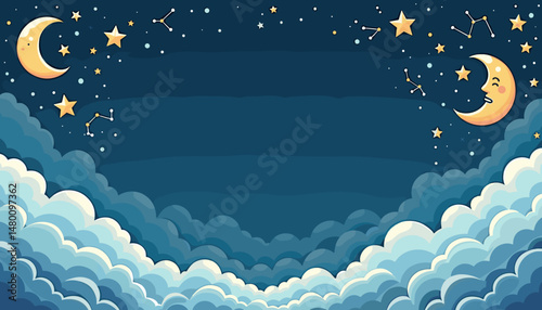 Dreamy wool cloud illustration with pastel colors, floating stars creating whimsical night sky background for nursery art design