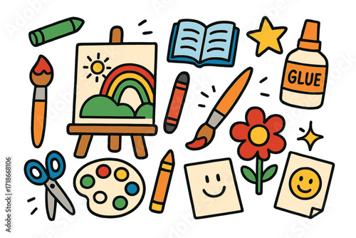 Hand-drawn teamwork elements with doodles and icons for collaborative concepts