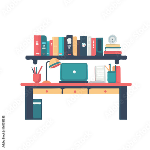 Illustration of a girl studying at home with coffee and a pleasant home environment creating a