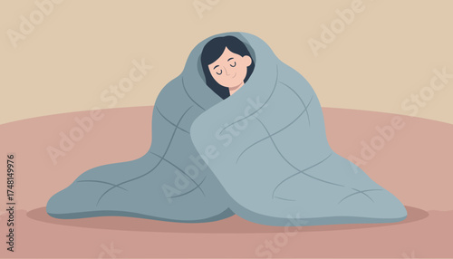 A serene illustration of a woman exuding tranquility and contentment, capturing the essence of peaceful contemplation amidst floating floral accents.