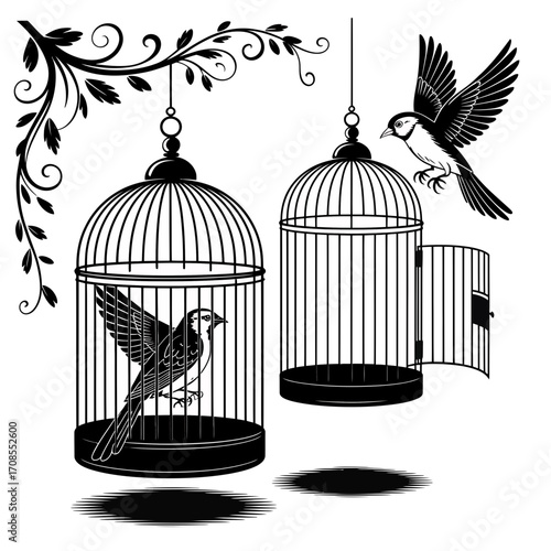 Illustrated bird cage silhouettes. Illustration bird cage design..