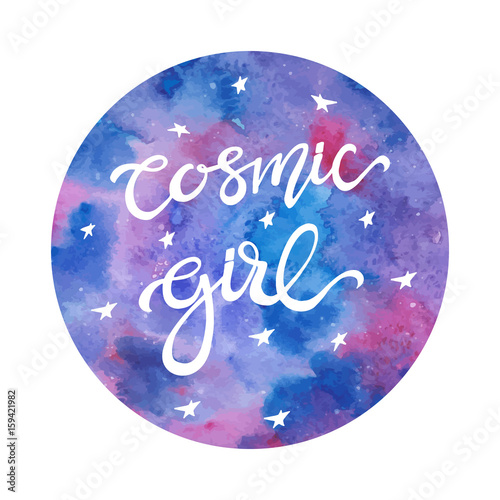Vector cosmic watercolor illustration. Colorful space background with stars