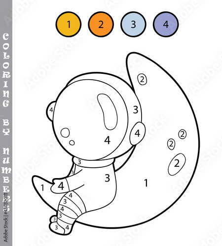Astronaut doing yoga on the background of the moon and space. Yoga exercises. Vector illustration