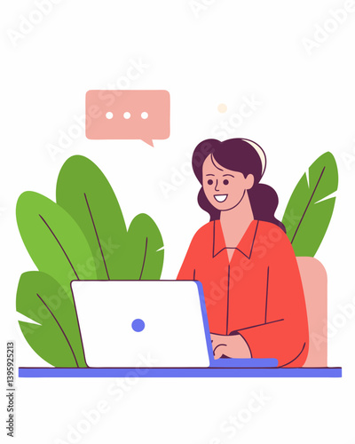 Remote Collaboration: Woman Engaged in Networking on Laptop at Stylish Home Office