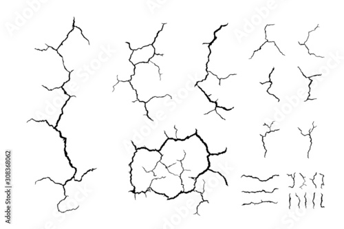 Crack and fissure vector set, broken surface, shattered glass, fractured ground, damaged wall, impact burst explosion effect, abstract texture destruction pattern, cracked earth, broken stone outline