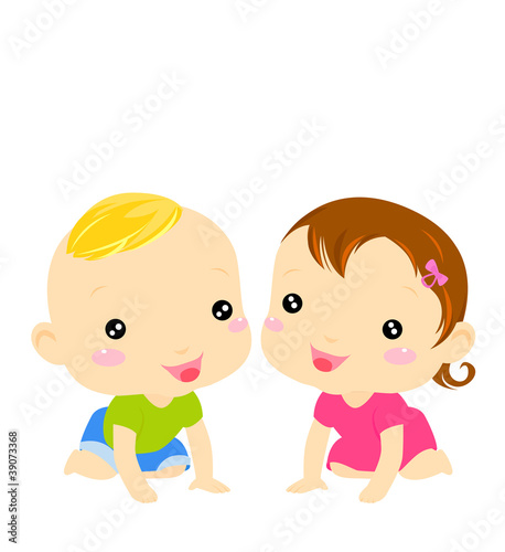 Cute cartoon baby crawling and looking excited