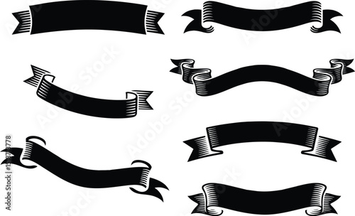 Ribbon banner icon set, Ribbon banner collection, decorative silhouette icons, ribbons sign style. Web icon kit of text banner tapes, Vector illustration !