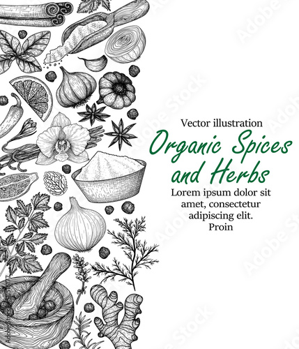 Herbs Spices vector hand drawn collection. Sketch kitchen herbs isolated. Design element for poster, menu, flyer, banner, package.