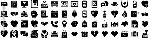 Set Of Romance Icons Isolated Silhouette Solid Icon With Love, Romantic, Man, Woman, Couple, Dating, Romance Infographic Simple Vector Illustration Logo