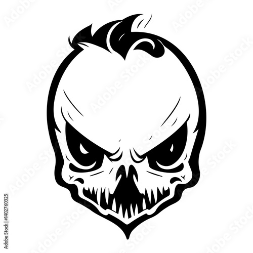 Grim Reaper Hooded Skull Silhouette, Black and white silhouette of a hooded grim reaper with a menacing skull face, perfect for Halloween or horror themes.
