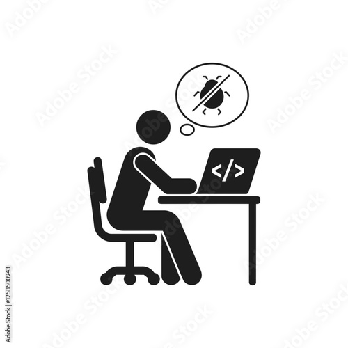 Collection of technology and software development icons illustrating various concepts and processes related to debugging and programming