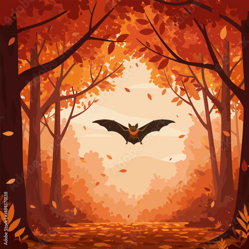 Autumn trees, fall foliage, seasonal change, red leaves, yellow leaves, deciduous trees, nature scene, vector art, cartoon style, illustration