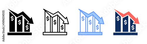 Economic Downturn Icon Set Multiple Style Collection