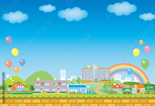 まちづくりのイラスト/自然と共に生きる持続可能な社会