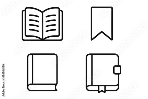 Closed Book with Bookmark Line Art Icon - Minimalist Vector Symbol for Education, Reading Apps, and Library Literature