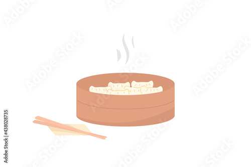 Dim sum illustration in a bamboo steamer, traditional Asian cuisine