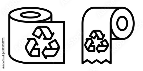 Waste Removal Process Icons. Line style icons of waste removal logs: trash symbol, recycling loop, filtration tube, process record