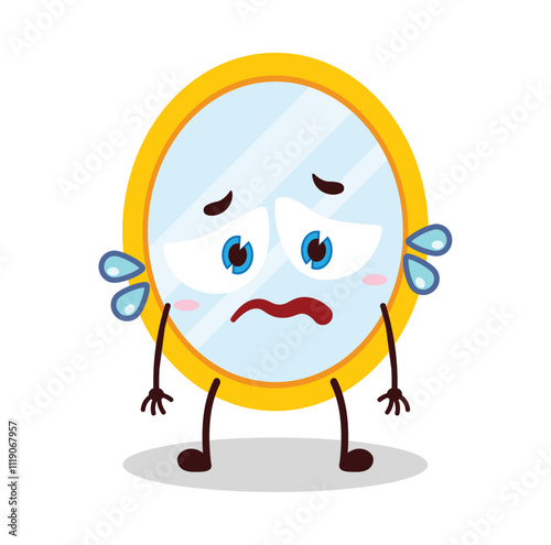 Cartoon cute rainy cloud weather character with rain droplets falling from its bottom. Isolated vector personage for stormy day forecast. Stylized sad whimsical eddy with dull sad face expression