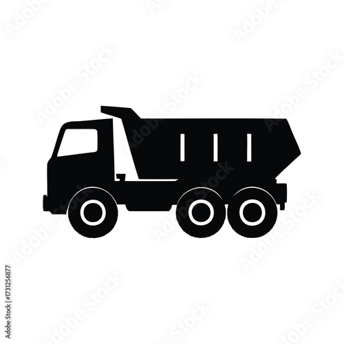 Dump Truck Silhouette Icon for Construction and Transportation.