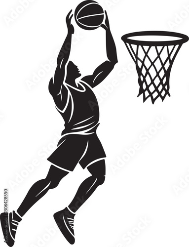Dynamic basketball player silhouette dunking