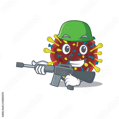 Friendly nurse of corona virus molecule mascot design holding syringe