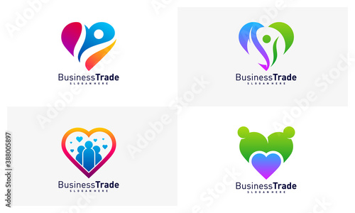 Set of Love People logo design vector, Colorful People logo design template, Icon symbol