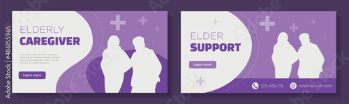 Elder support service online banner template set, elderly care corporate advertisement, horizontal ad, pensioned aid campaign webpage, flyer, creative brochure, isolated on background