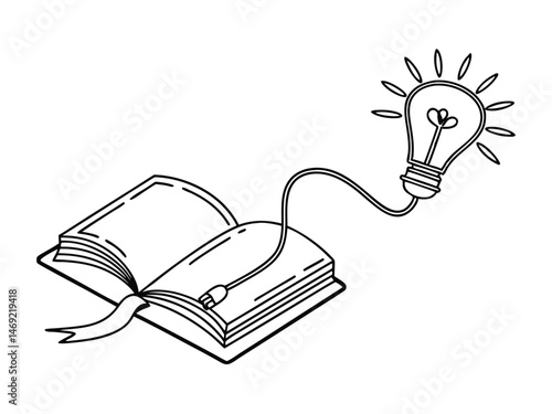 Open Book with Glowing Light Bulb Symbolizing New Ideas.