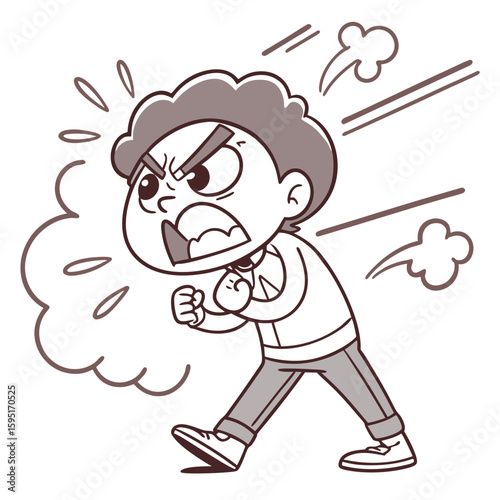 Angry boy cartoon character. Boy face lip sync vector set. A Boy standing and show anger cartoon. Angry lip sync set.Cartoon hand gesture clipart, graphic, illustration.