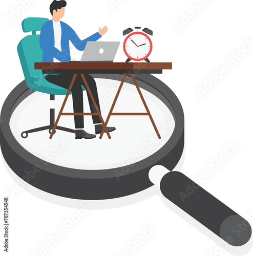 Flat illustration of micromanaging boss toxic manager use magnifying glass to monitoring employee excessively