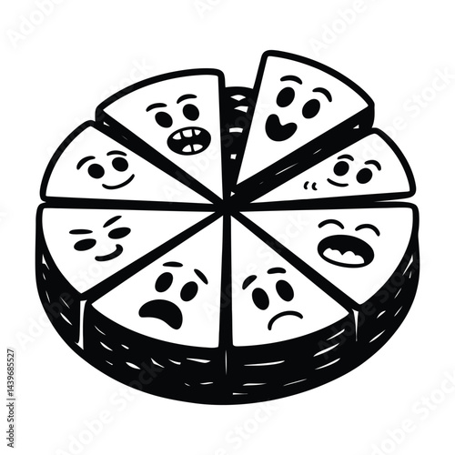 Vector art of collection of eight unique snowflake designs in black and white on a light blue background