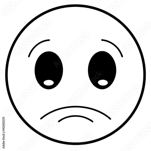Black and white cartoon emoji face with droopy eyes and sad expression concept idea