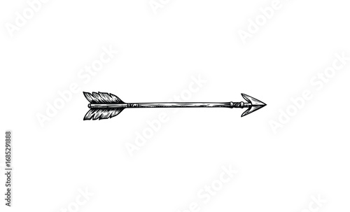 Tribal arrow graphic with fletching and arrowhead. Vector hand drawn illustration