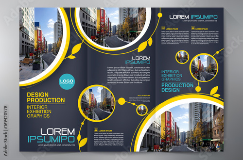 Corporate Tri Fold Brochure vector illustration. Vector triple folding brochure for business and advertising. Layout with modern elements and abstract background
