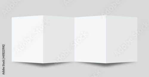 Square open leaflet, three panel accordion fold mockup template on background .Blank trifold paper, thank you card, notecards, flyer, greeting card, wedding invitation, postcard, brochure. Vector