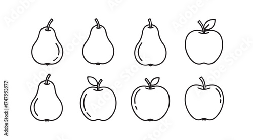 Hand drawn apple and pear fruits set outline sketch style on white vector