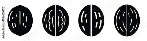 Black and White Fruit Assortment: Icon Set for Healthy Eating
