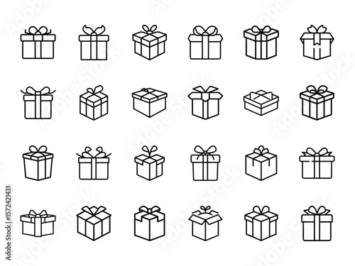 Gift icon graphic set. trendy stroke line style