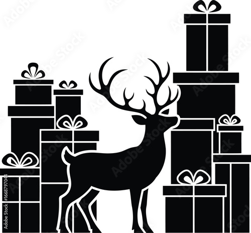december gift box vector design with black silhouette and white background