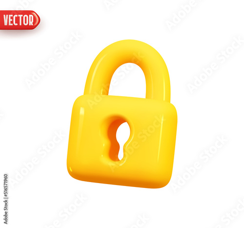 3D Closed and open yellow padlock icon set. Data protection and security concept. Lock with password. Privacy and encryption. Cartoon creative design icons. 3D Vector illustration