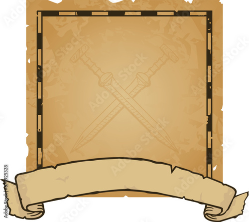 Square Parchment with Ornate Frame, Dragons and Crossed Gladiuses