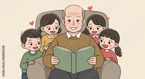 Warm family moments grandparents spending time with grandchildren indoors illustration