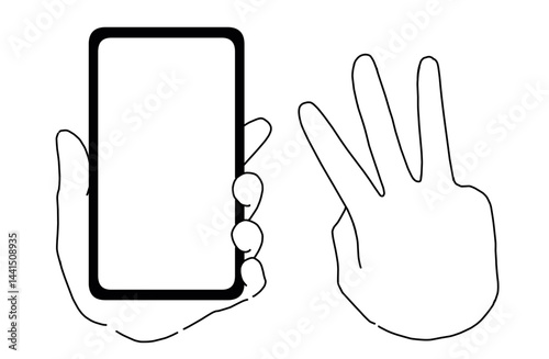 Close up view of a hand holding a modern smartphone with a blank screen ready for interaction in a clean minimal graphic illustration.