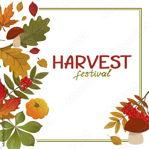 Assortment of autumn harvest icons featuring colorful fall leaves